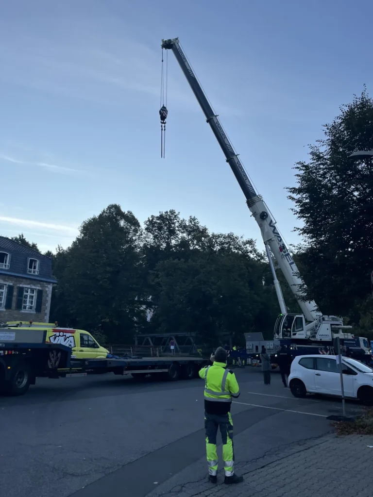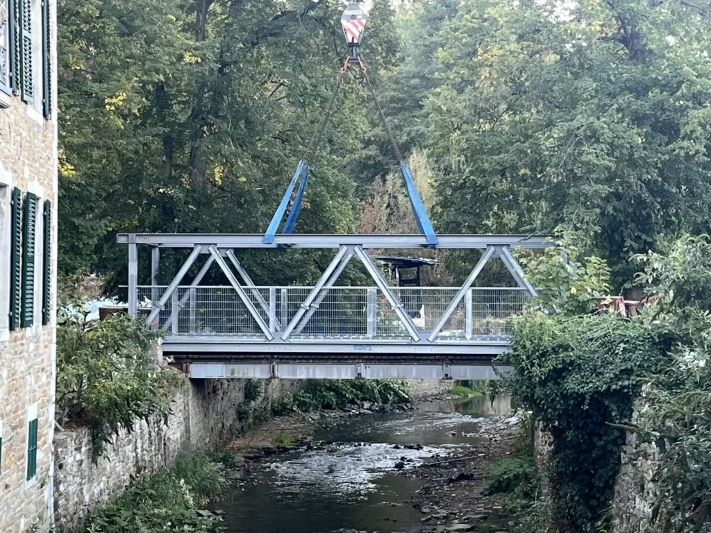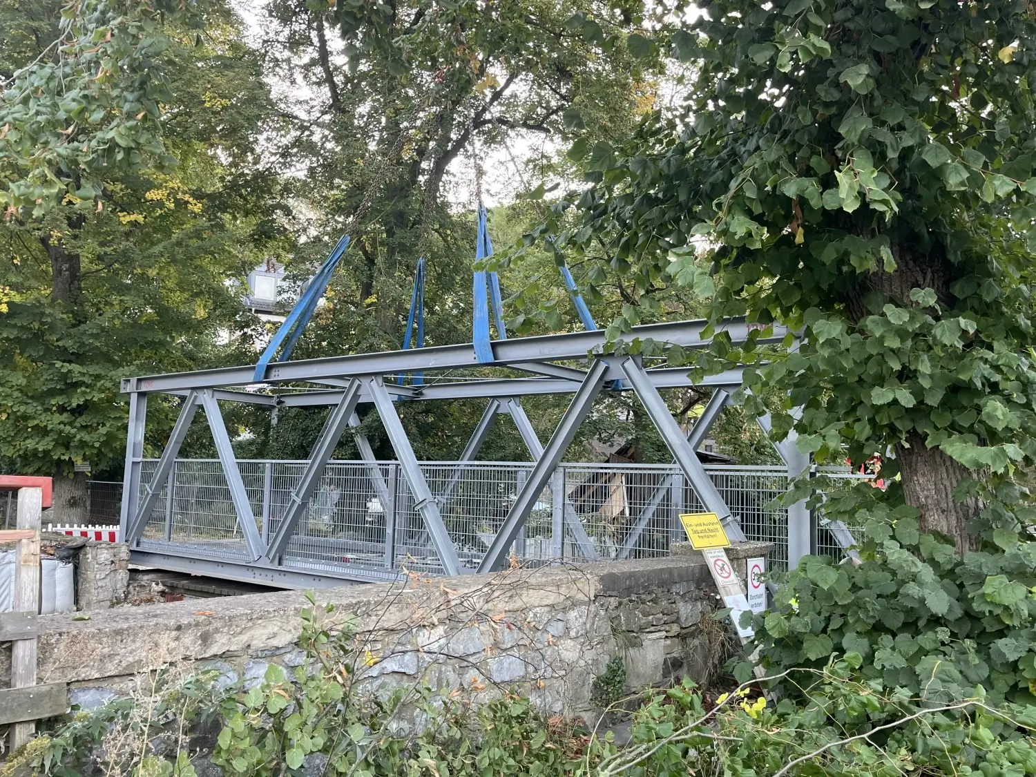 Heute wurde eine provisorische Ersatzbrücke installiert, die den angrenzenden Kupferhof wieder für Fahrzeuge erreichbar macht. Eine dauerhafte neue Brücke ist nach aktuellem Planungsstand für das Jahr 2029 vorgesehen – nach Fertigstellung der beiden Rückhaltebecken.